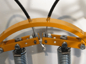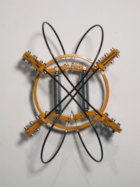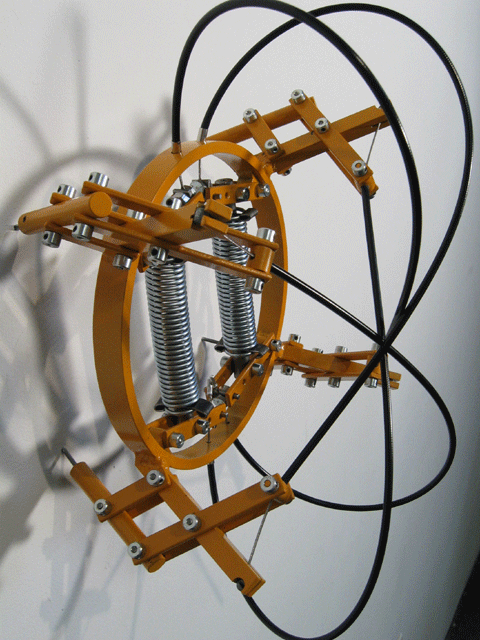 Drywall Mechanism #2, 2004. Painted steel, springs, 15” x 11” x 11”.